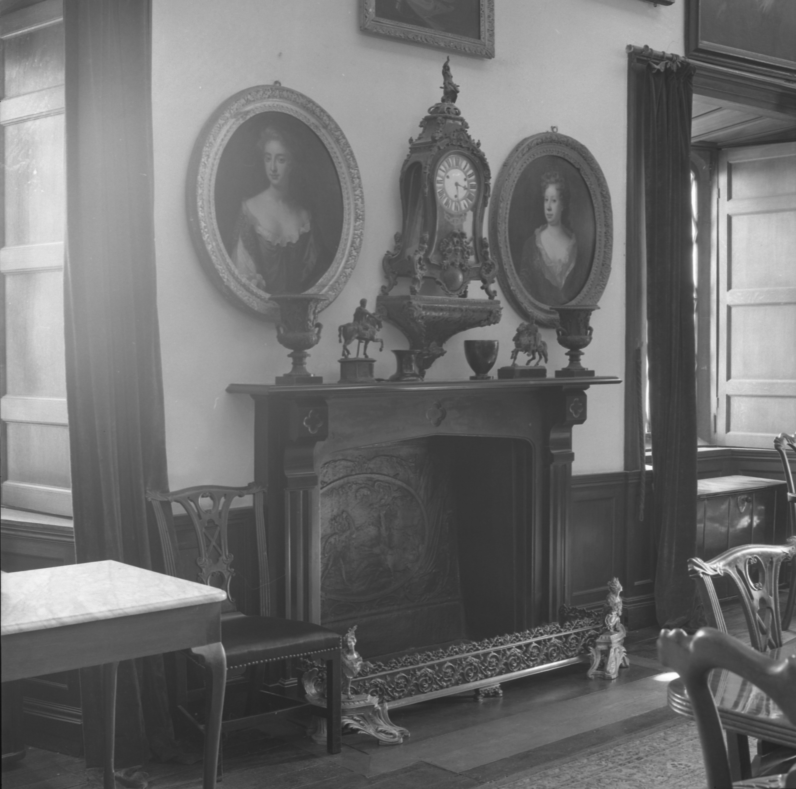 You can see the carved heads of King Edward IV (1442 – 1483) in this photograph of Malahide Castle 1976, Dublin City Library and Archives.Richard Talbot (1630-1690) Duke of Tyrconnell sits to the left of the chimneypiece. (see [5])The Great Hall, a photograph that is displayed in the entrance hall of the castle.