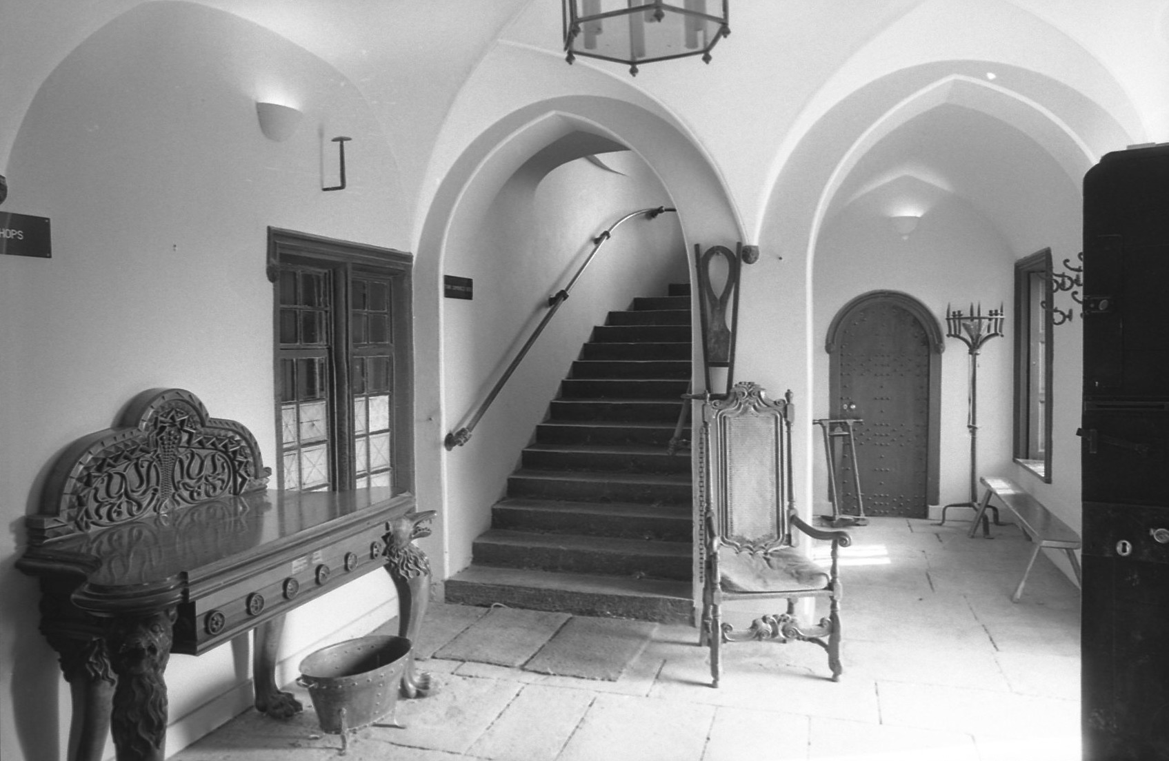 Conservation of the 19th century windows and fireplaces also took place. Studying the photographs, the windows appear to have been moved from the right hand side when facing the minstrals gallery, to the left hand wall! In fact a room seems to have disappeared from the Dublin City Library and Archives 1976 photograph above.