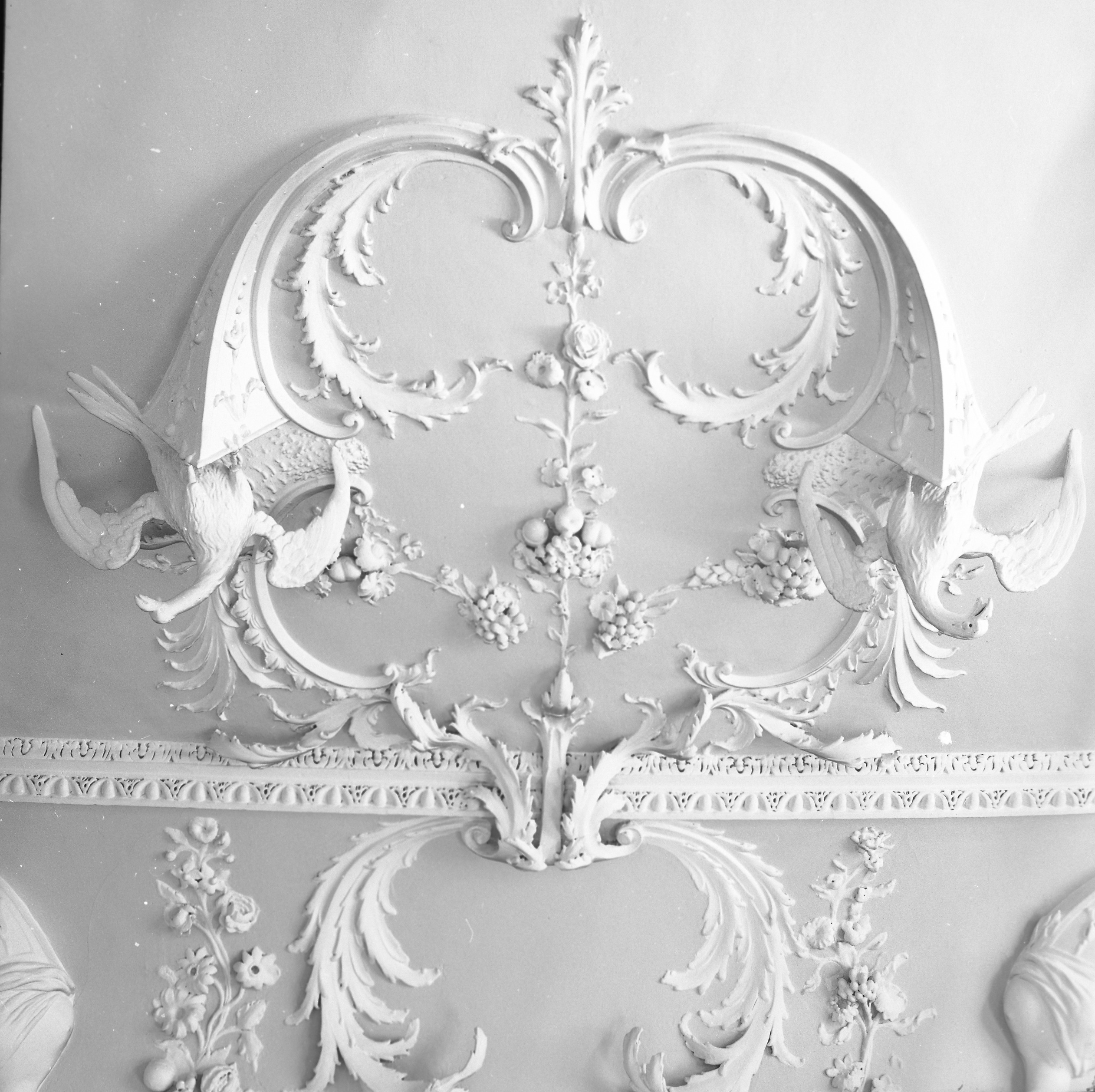 Robert West plasterwork in 20 Lower Dominic Street, photograph courtesy of Dublin City Library Archive.Dominick Street Lower, No. 20 ceiling of stairhall, Robert West’s house 1758.