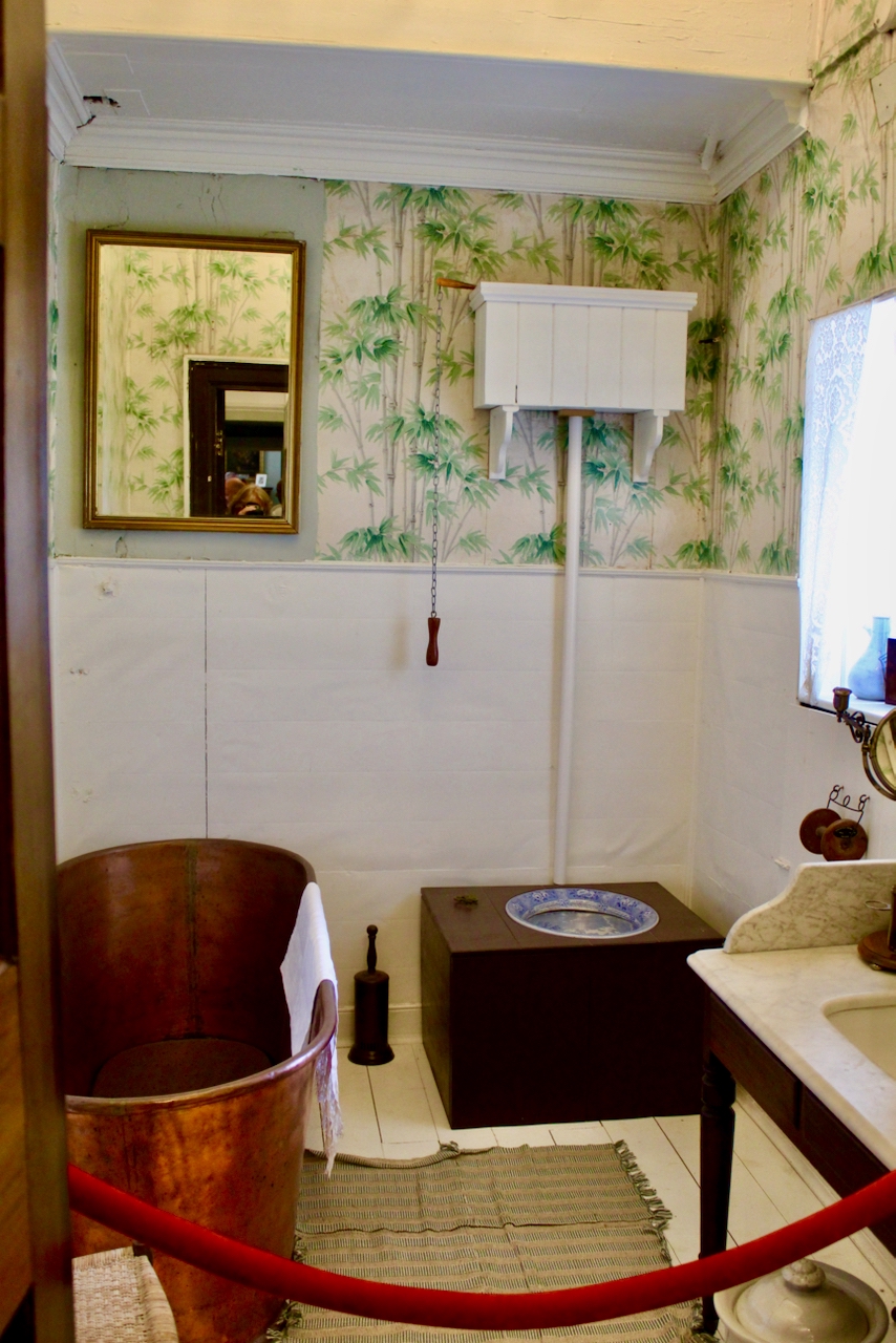 One entire room is dedicated as a “cabinet of curiosities.” Desmond Guinness and Desmond FitzGerald tells us in their entry about Newbridge House in Great Irish Houses that the collection may have started life as a shell collection in the 1790s by Elizabeth Beresford (1736-1860), who married the archbishop’s son Colonel Thomas Cobbe (1733-1814). She came from Curraghmore in County Waterford (see my entry on Curraghmore) and would have been familiar with her mother’s Shell Cottage. Much of what we see in the collection today comes from the Indian subcontinent, including a Taj Mahal in alabaster, ostrich eggs, corals, statues of house gods, snake charmer’s box and tusks with carving noting the abolition of slavery [see 12]. The oriental theme is even carried through to the elephant design curtains. The panels on the wall are reproduction of the originals.