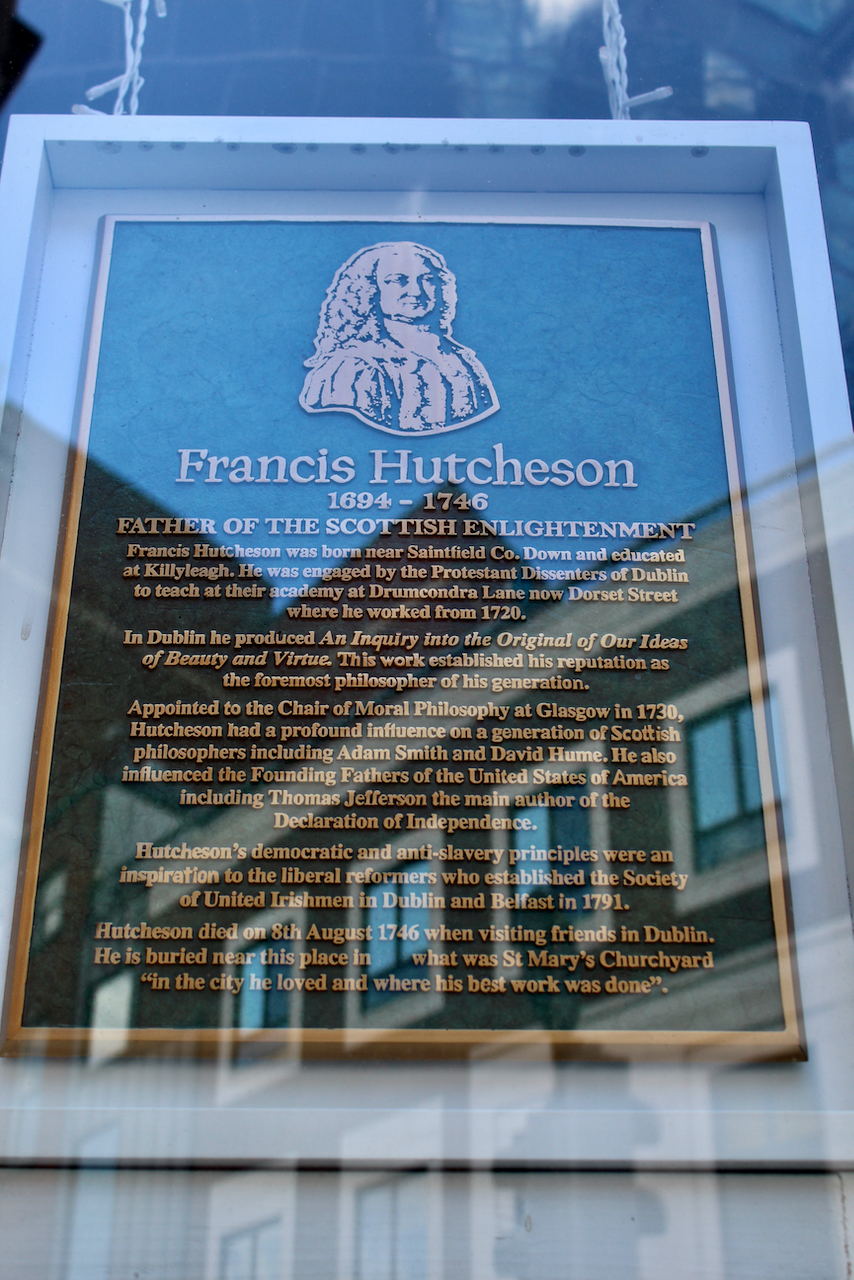 By the way I hope I am related to another founding member of the earlier version, the Dublin Philosophical Society. Mark Baggot, who died in 1718 and is buried in St. Audoen’s in Dublin, was the only Catholic in the society, which was founded in 1683 by, amongst others, Samuel Madden’s uncles William and Thomas Molyneux, and was intended to be the equivalent of the Royal Society in London. I have not found a connection yet with Mark Baggot but perhaps my family comes from a junior line I haven’t yet traced. The Hilton Park website tells us that it was through Madden’s friendship with the Earl of Chesterfield that the Dublin Society received its Royal Charter.