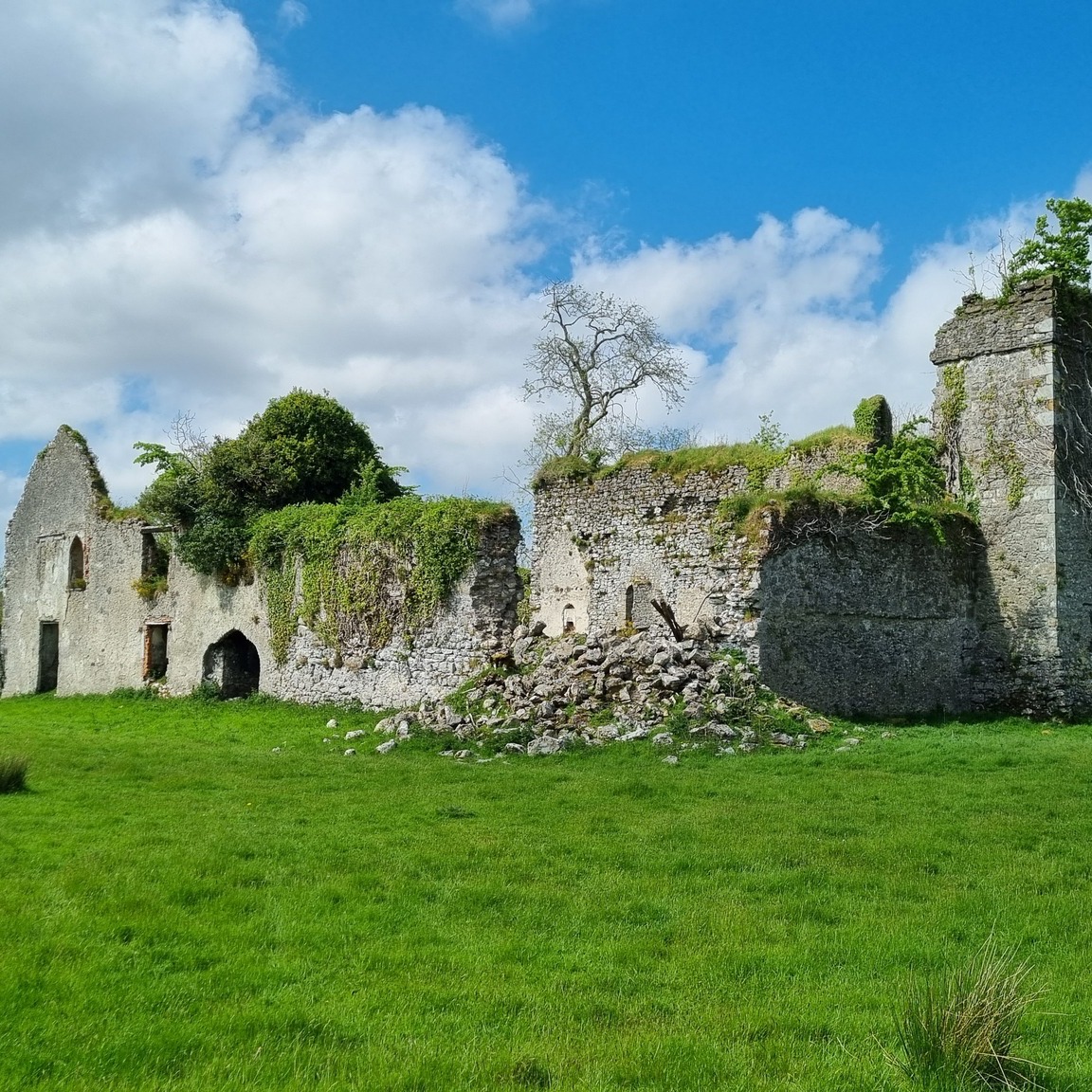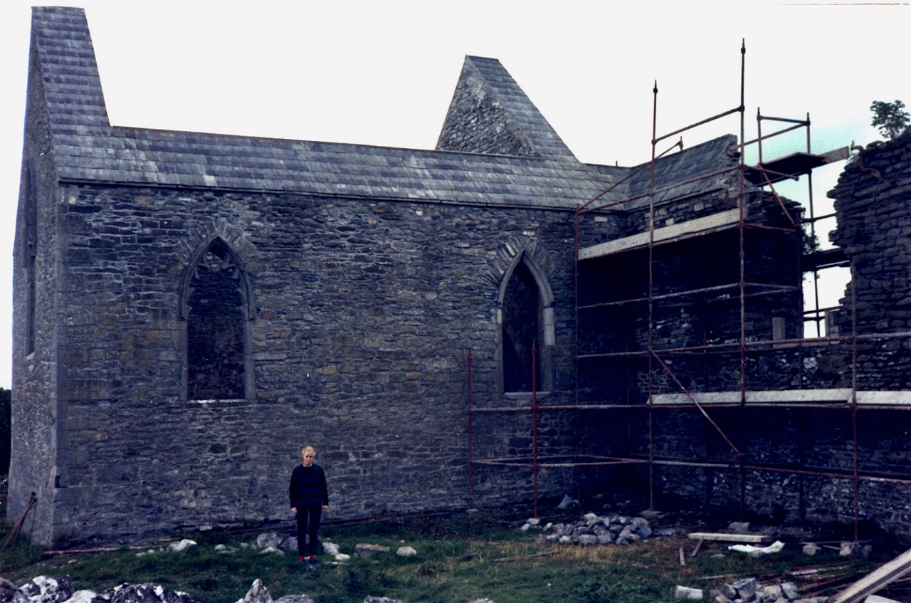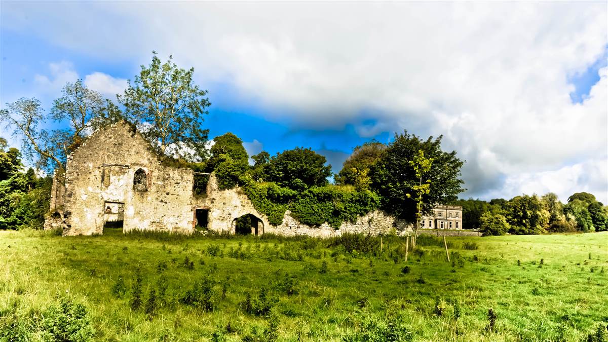 Roderick told us that the Croftons acquired the property around 1609, and that Henry Crofton built a thatched Tudor house around 1627. The National Inventory tells us that the remains of the house near the Templar ruins are of a two-bay two-storey stone house, built c.1650. [5]