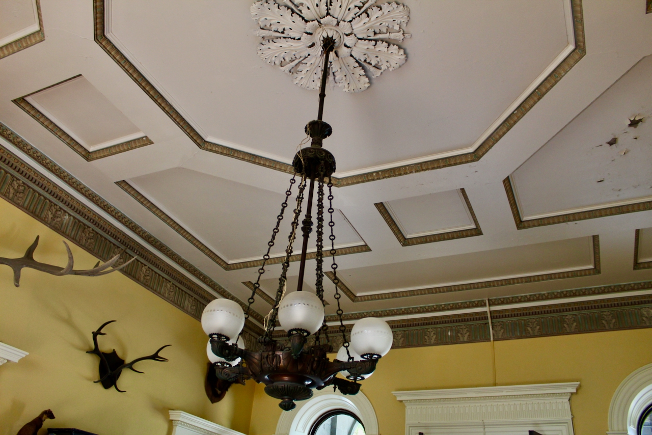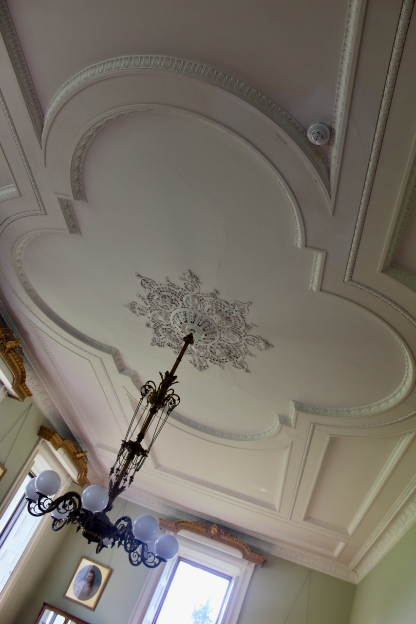 Roderick told us about the family as we toured the stair hall vestibule, drawing room and dining room, then brought us across the front hall to the newly renovated part of the house, which includes a former gun room passage. He managed to find craftsmen to do repairs, including the windows, moulding and plasterwork. After the tour, he kindly let us wander around the house, including up to the bedrooms.
