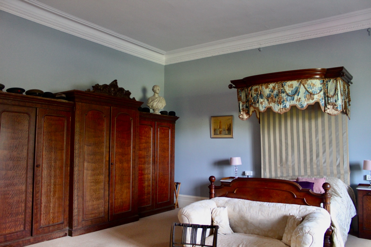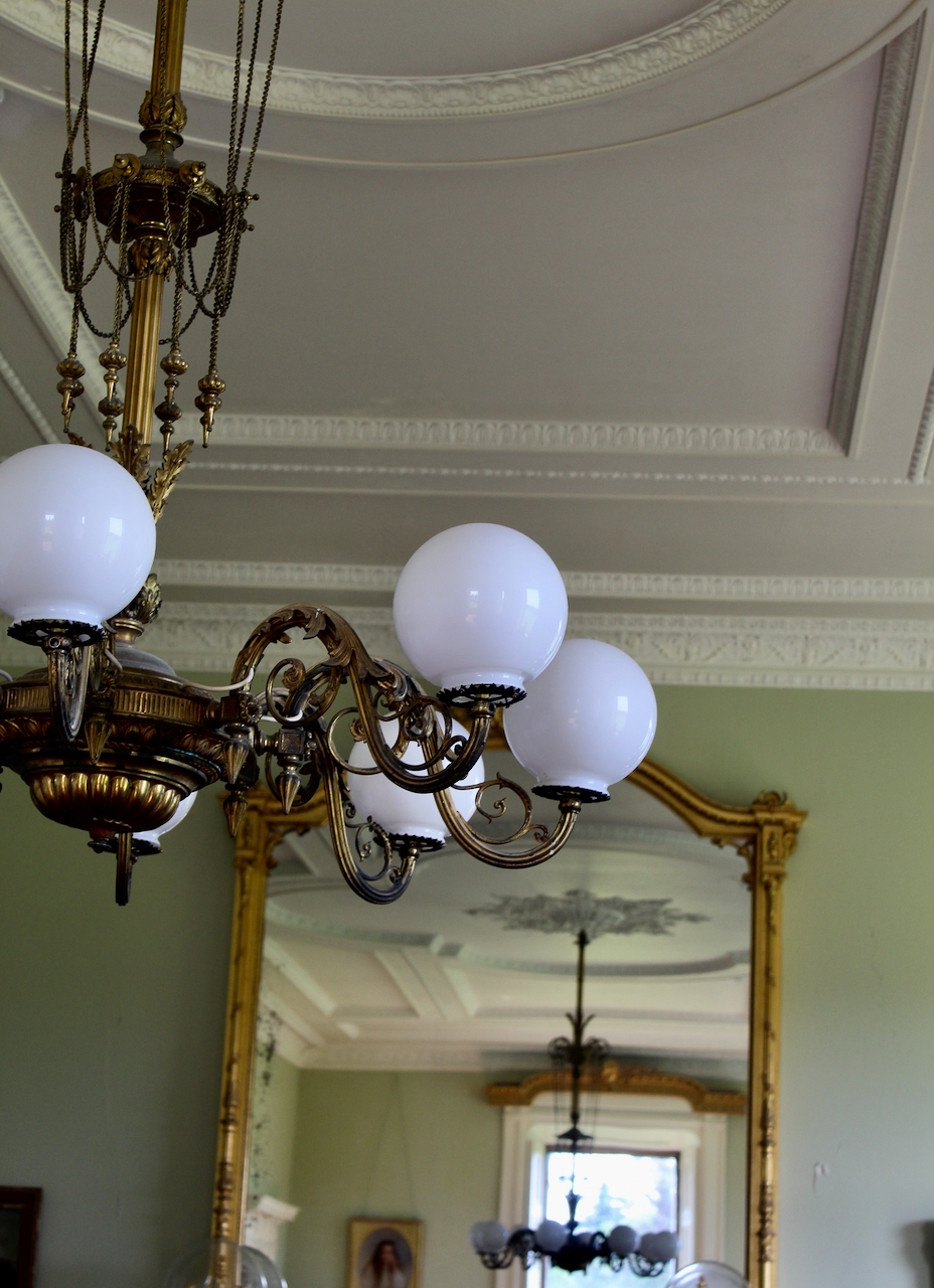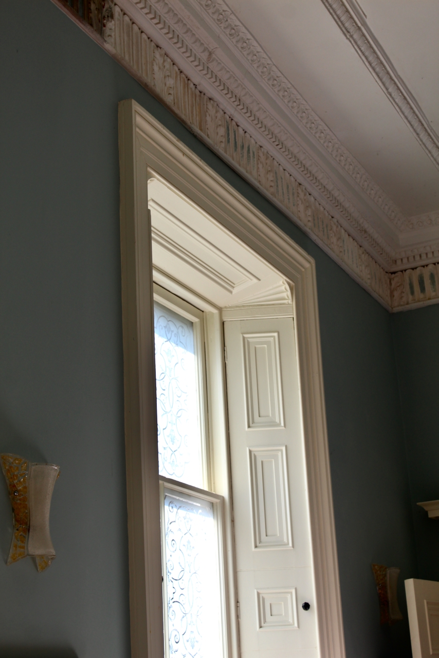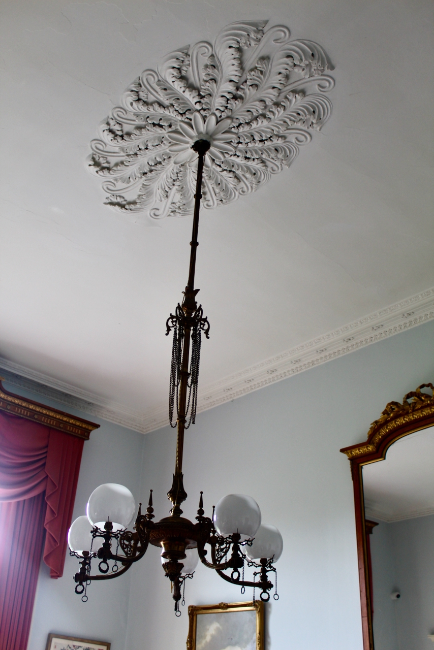 Roderick told us about the family as we toured the stair hall vestibule, drawing room and dining room, then brought us across the front hall to the newly renovated part of the house, which includes a former gun room passage. He managed to find craftsmen to do repairs, including the windows, moulding and plasterwork. After the tour, he kindly let us wander around the house, including up to the bedrooms.