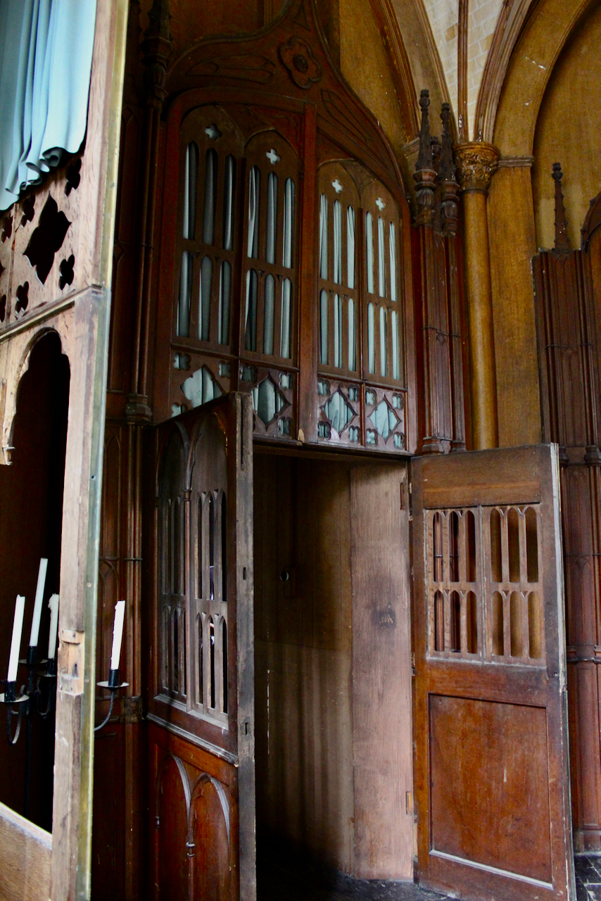 The panelling by each bookcase can be opened to reveal more space, and behind one secret door is a small room which leads out to the chapel, the guide told us.