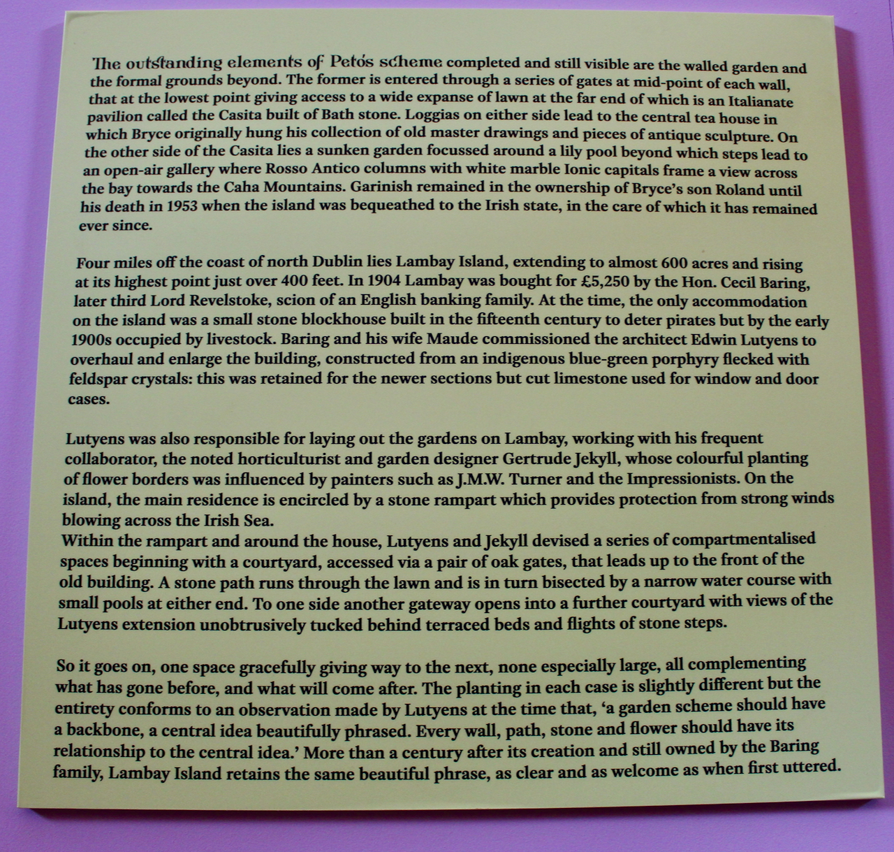 “The gardens of Ilnacullin owe their existence to the early twentieth-century creative partnership of John Annan and Violet Bryce, the island’s owners, and Harold Peto, an architect and garden designer. The area enjoys a mild and humid micro-climate that makes for spectacular and flourishing plant life all year round.