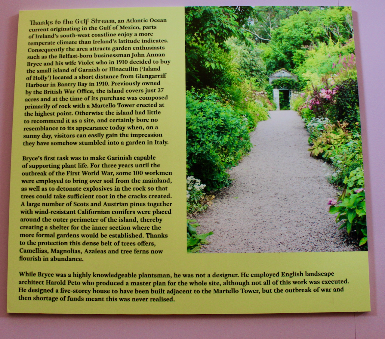 “Ilnacullin is an island garden of diminutive size and rare beauty. Nestled in the sheltered coastal harbour at Glengarriff in Bantry Bay, the gardens display a wealth of unique horticultural and architectural gems. Bryce House is a fitting memorial to the visionary creators of this unique place.