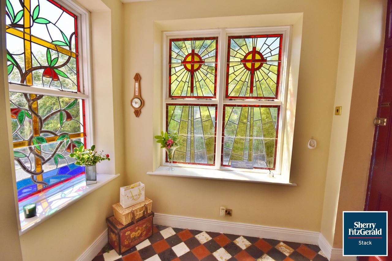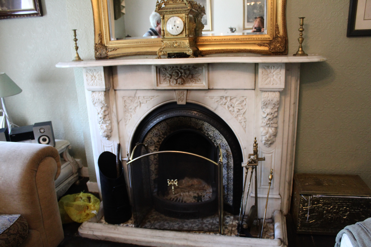 “The heavy oak carving of the fireplace and over mantel are of typical Edwardian style, as is the glass panelled door from the porch. In a glass-fronted bookcase at the back of the hall is an artefact with a very strange history. It is a carving knife carefully stored in a glass topped box. This knife has a curse on it, in that anyone who opens the box will die within the year. Needless to say, no-one has attempted this to date! The knife was the property of one John Purcell, of Highfort, Liscarroll, who received a knighthood in 1811 for defending himself, single-handedly, as a very old man against a number of burglars. He killed three of them with this knife, the rest fled. He is known as “The Knight of the Knife” as a result of this feat. At the time, it was made a rule in law that an octogenarian could kill in self defence.“