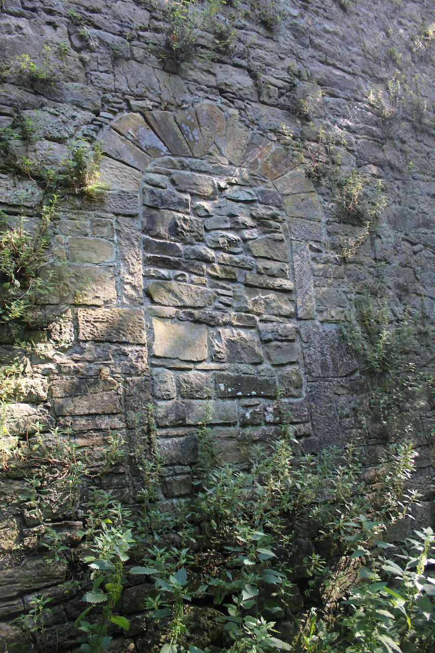 The gate lodge, built around 1890, was inhabited until fairly recently, and has one room on each side. It has a central section with Tudor arched carriageway straddling entrance road, and flanking lower single-bay screen walls.